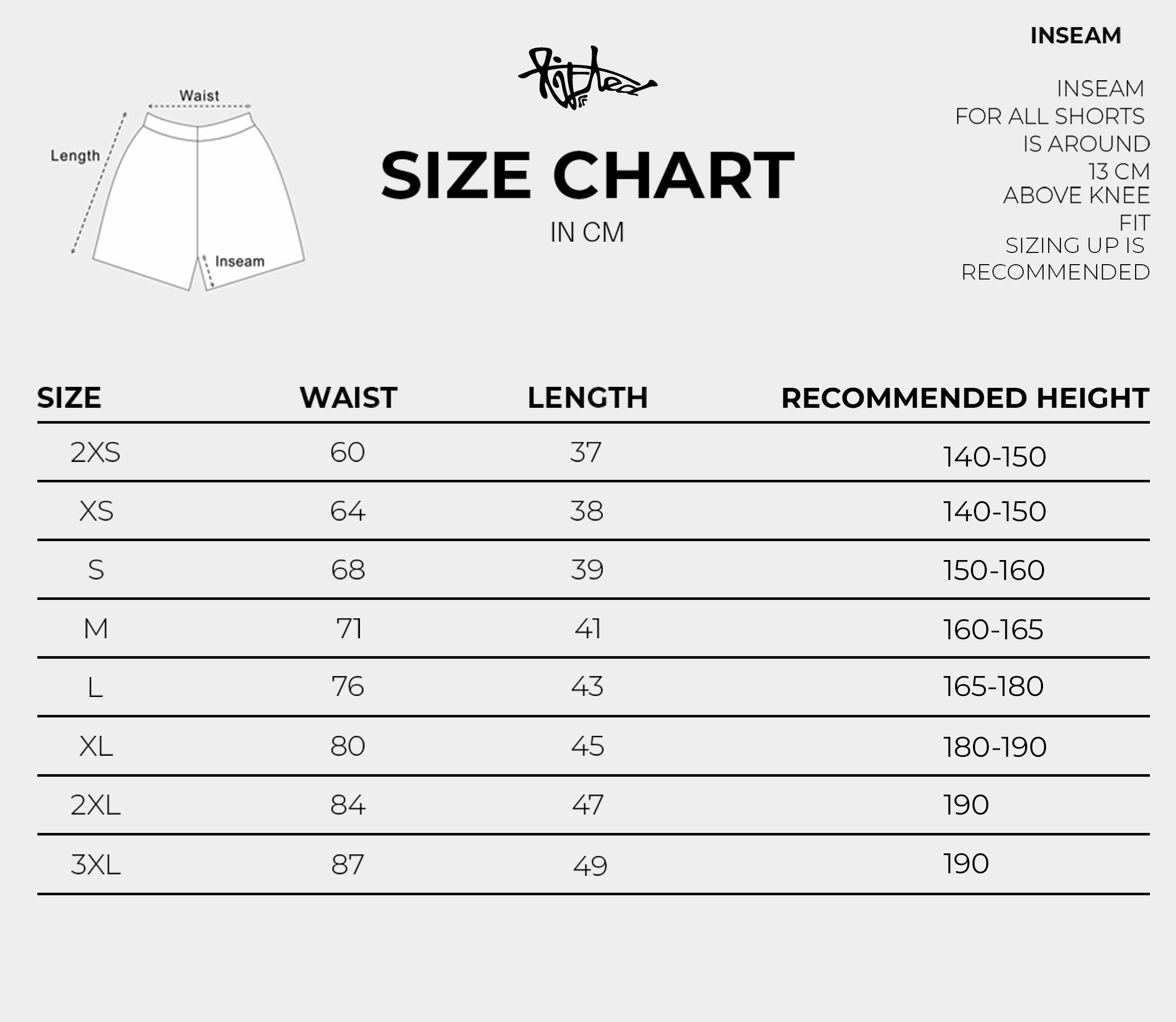 IF YOU PREFER LONGER SHORTS THEN TAKE A SIZE BIGGER THEN THE ONE RECOMMENDED